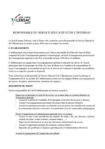Annonce RVS – lycée Talensac – Nantes