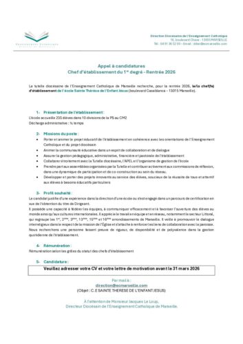 APPEL A CANDIDATURE – ECOLE Ste Thérèse de l’E.J MARSEILLE Oliva Rakotomalala2026-02-18T11:19:26+01:0018/02/2026|