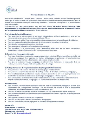 Poste – direction College – Francoise Cabrini